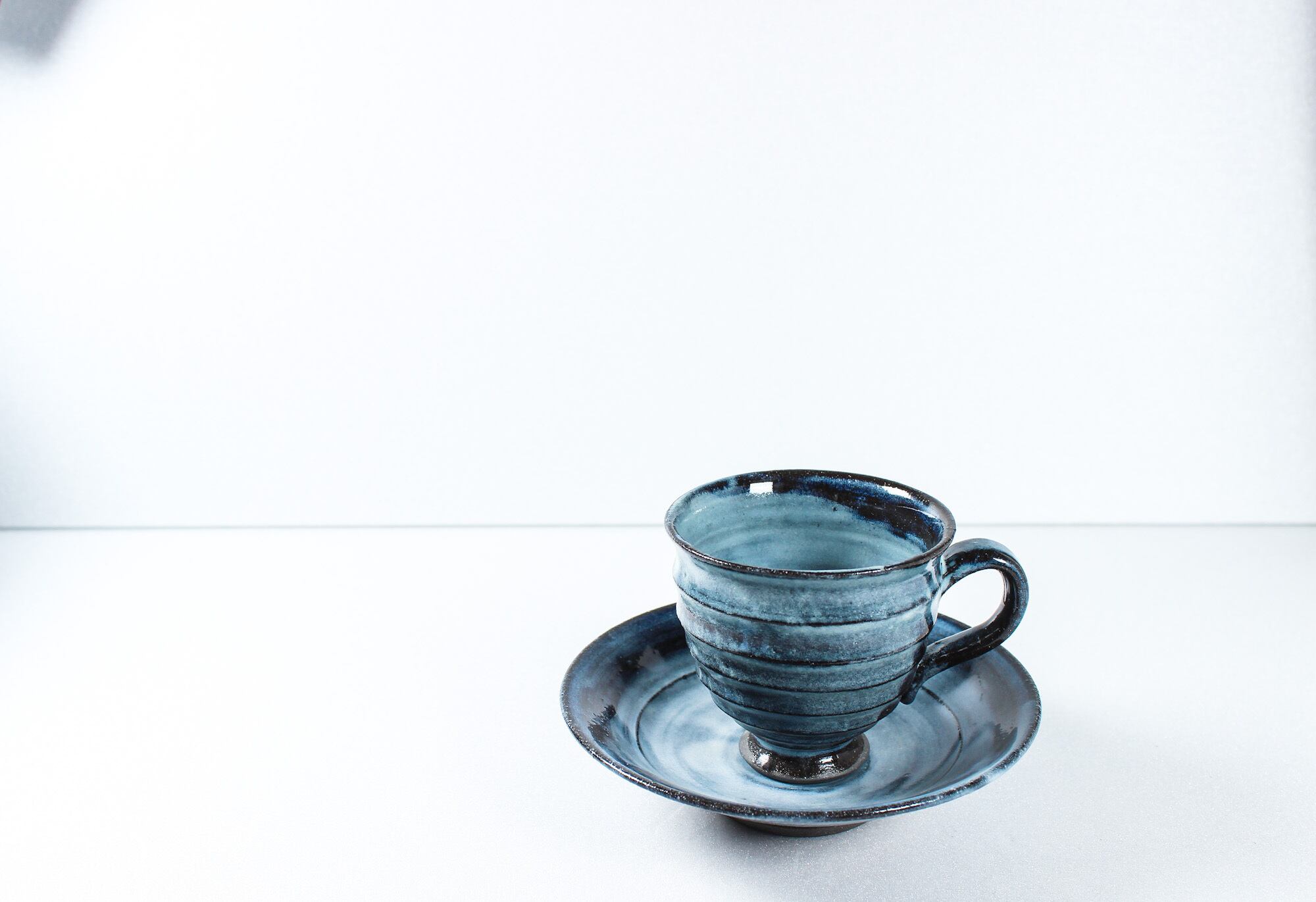 白藍釉シリーズのエスプレッソコーヒーなどを飲む