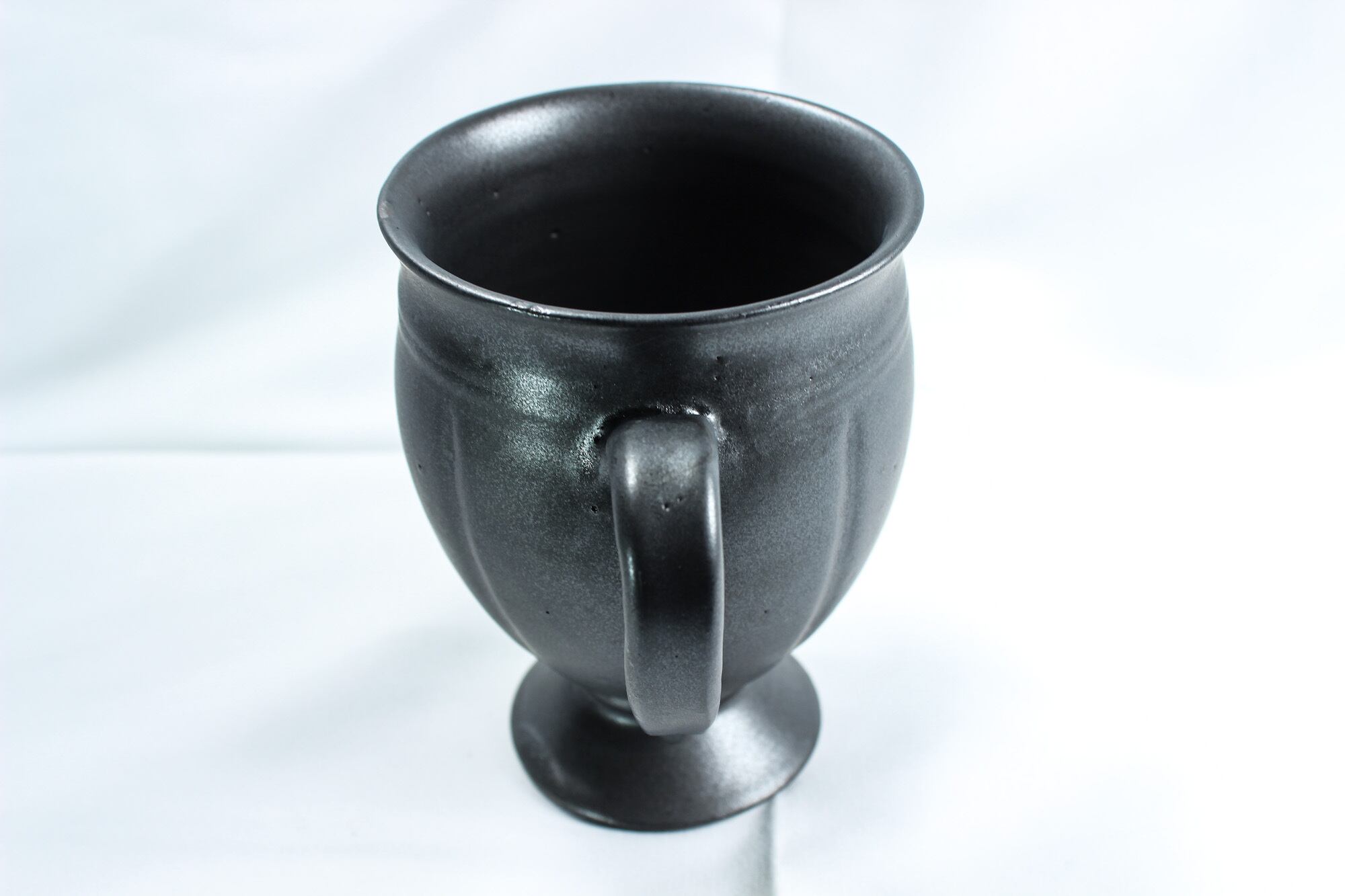 深い黒の釉薬が洗練されたデザインを引き立て、特別な飲み物の時間を演出します。このマグカップは、手作りの温かみを感じられる一品であり、釉薬のかかり具合によって異なる表情を楽しむことができるため、世界に一つだけの存在です。どんな飲み物も、このゴブレットマグカップがあることで、日常のひとときが特別なものになります!