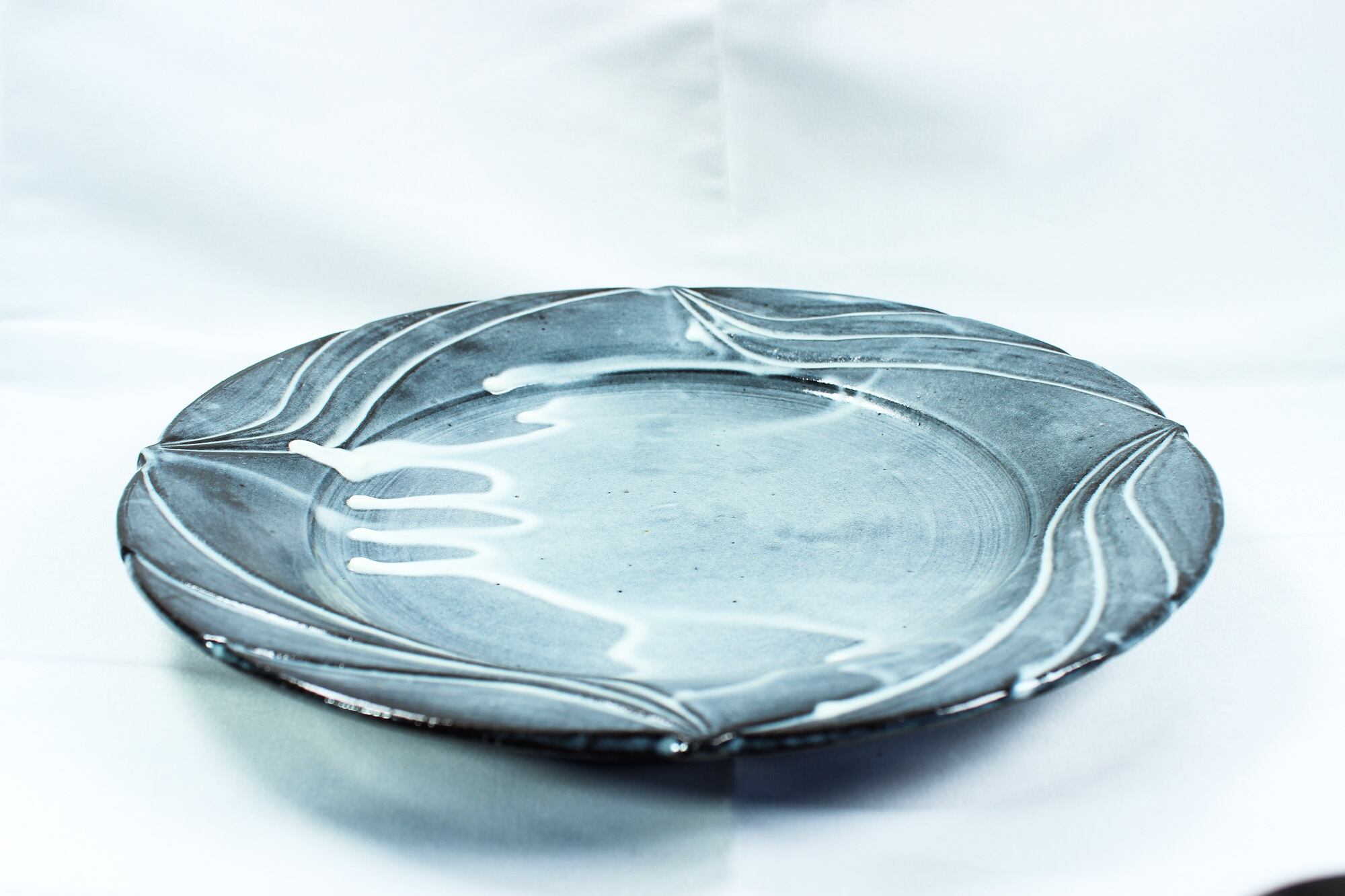 **白藍釉波文8寸皿**