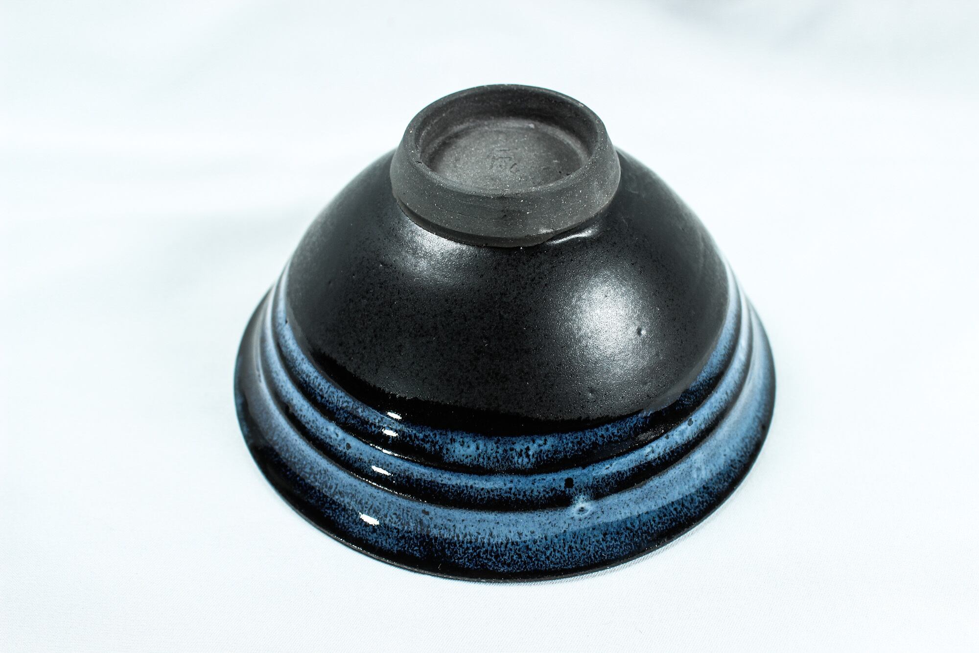 沖縄と熊本を繋ぐ想いで白藍釉と黒煌釉の基礎の黒釉を掛け合わせて出来た、深海に差し込む光のような藍色のイメージの深海藍シリーズのお茶碗の小さいサイズです。